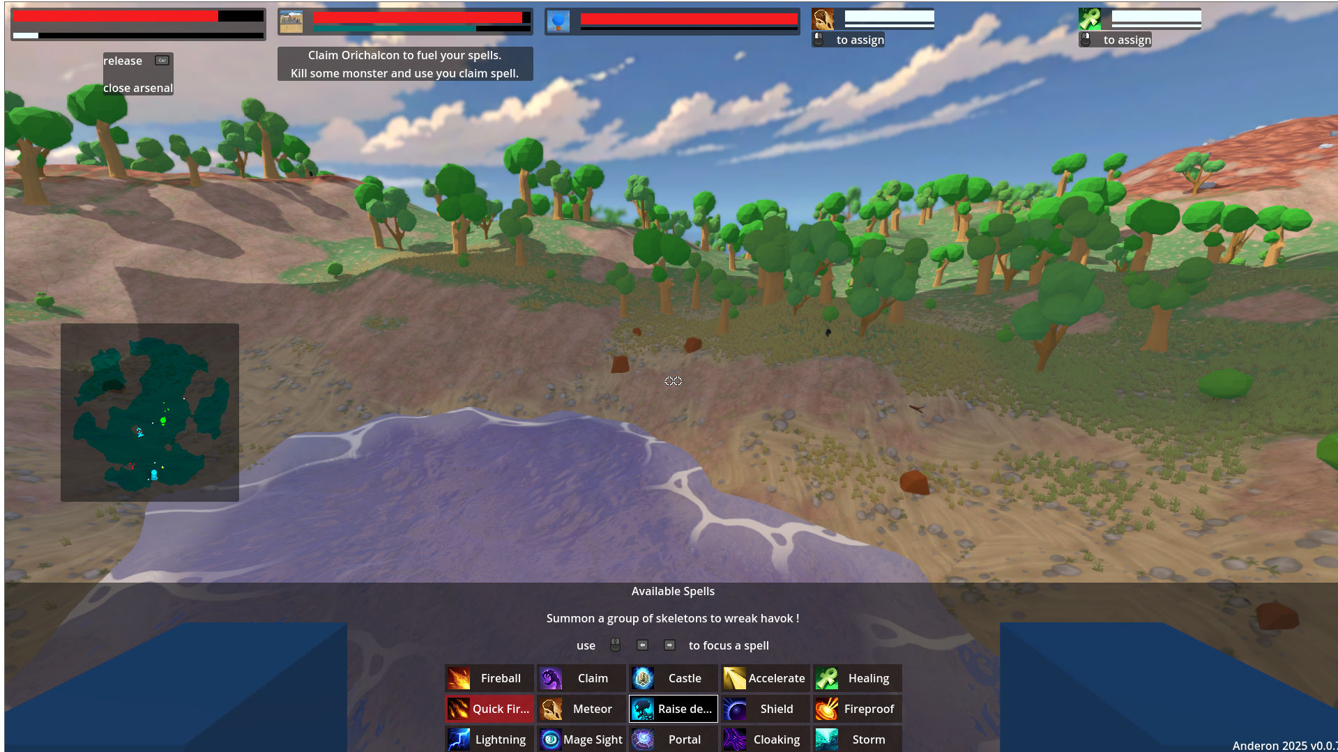 Current prototype only allow to build simple base, kill a few monsters, gather some orichalcum and fight crude ennemis wizards with some basic spells but I hope it can show the game fun potential !
